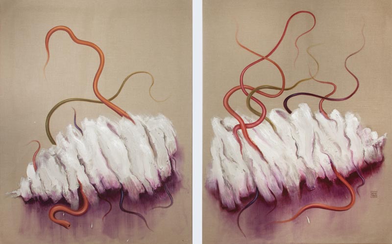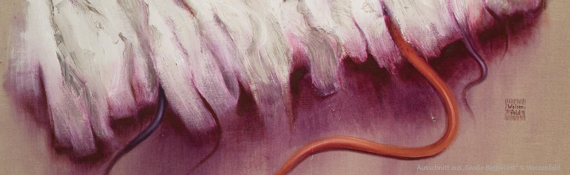 Große Bettwurst, 2 Tafeln a 200x155cm, Öl Leinw., 2021 © Weizenfeld